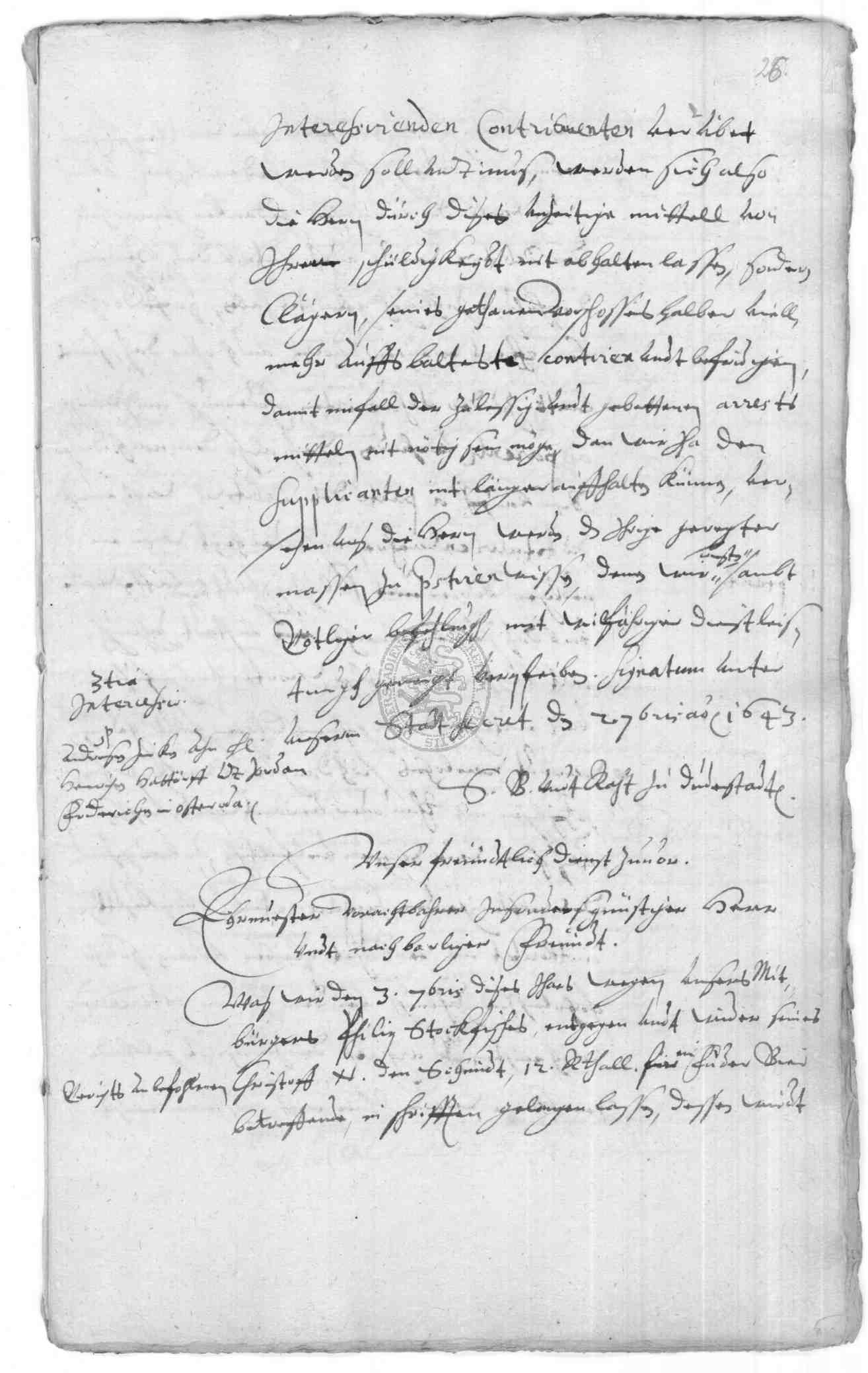 | Titel: | Geburtsbriefe, Intercessionen, Schreiben an auswärtige Behörden sowie Protokolle aus den Jahren 1642-1649 |