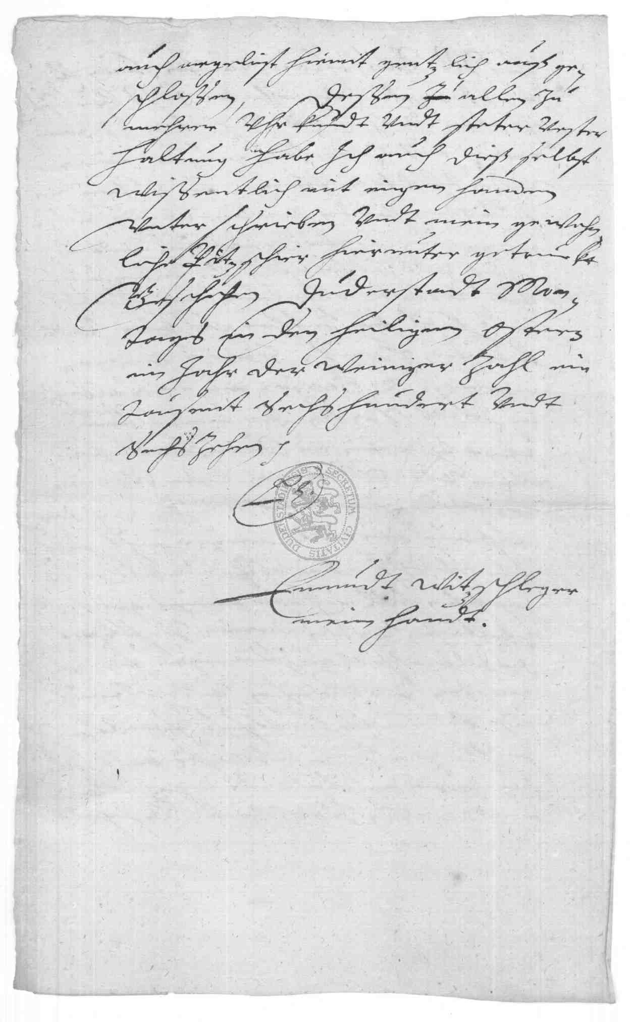 | Regest: | Fürstliche Kanzlei zu Osterode schreibt an den Rat in einer Streitsache der Kinder des verstorbenen Balthasar Schlichten zu Ebergötzen gegen den Bürger Edmund Witschleger |