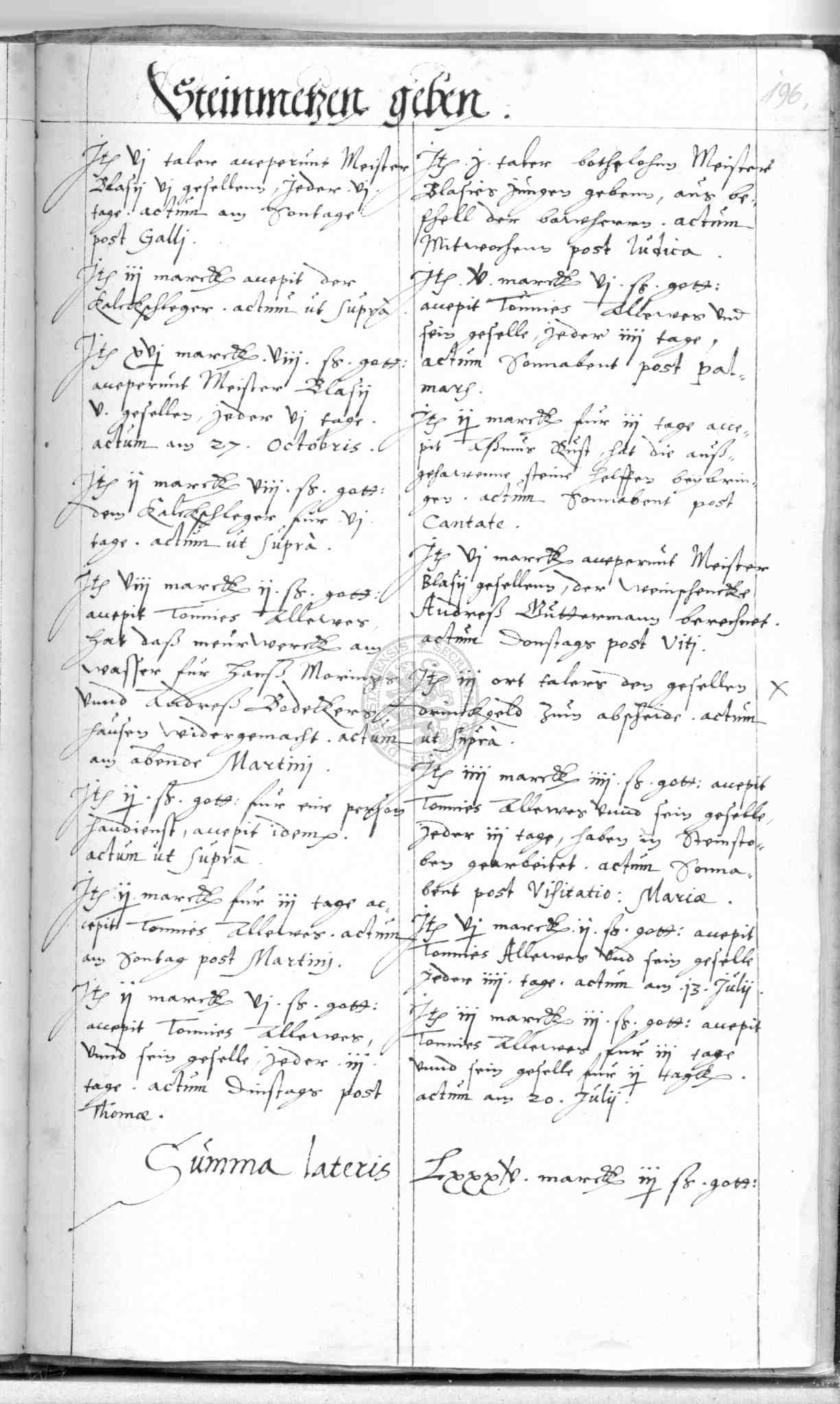 | Rubrum: | steinmetzen geben |